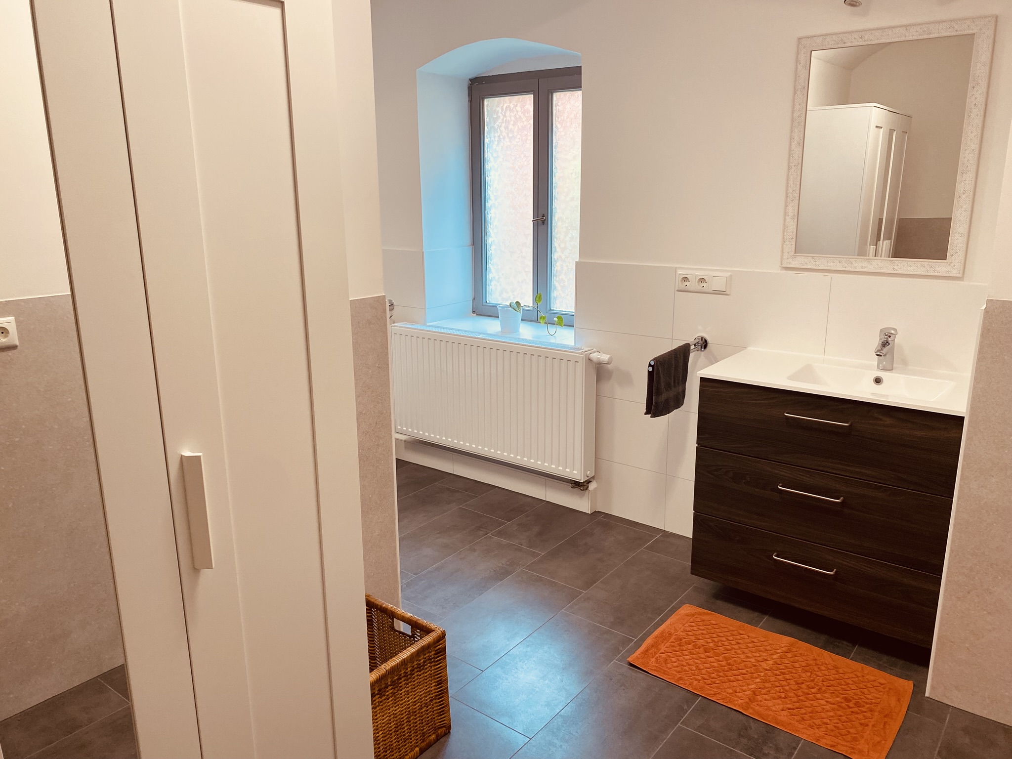 *großzügiges und modernes Badezimmer, mit ebenerdiger Dusche